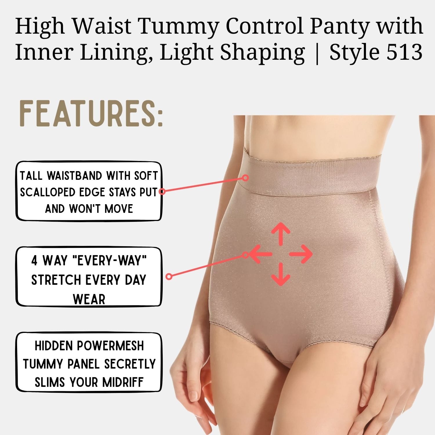 •      High Waist Tummy Control Panty with Inner Lining, Light Shaping | Style 513