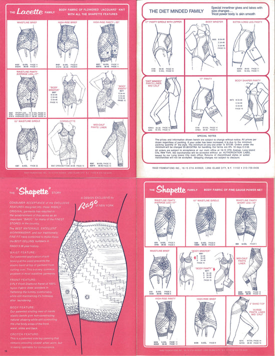 Rago® Shapewear is unique for its construction, High Waist/No Roll guarantee, and No Ride Up features. Rago®’s constructed tummy panel and flat seaming make for comfort, a smooth look, and above all, peace of mind. Our flat sewing and secure woven elastics prevent the garment from falling apart after washing, unlike non Made-in-America products. Other features include flexible supports for efficient contouring of the body and contour power shaping bands that give the wearer both physical and emotional security. We offer light control shapewear made with a lighter fabric with 4-way stretch. Rago® Shapewear prides itself on their technical superiority and the integrity of their original, Made-in-USA products.