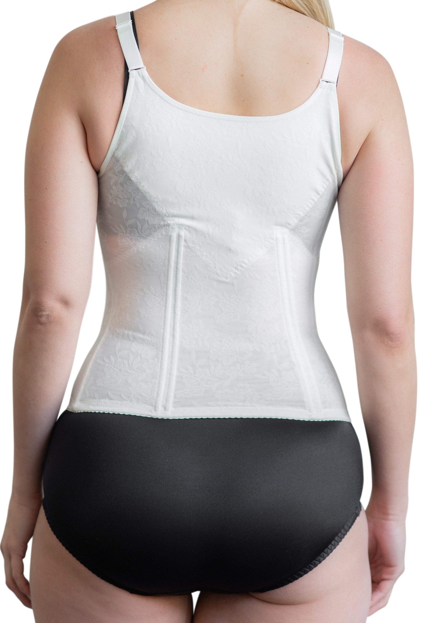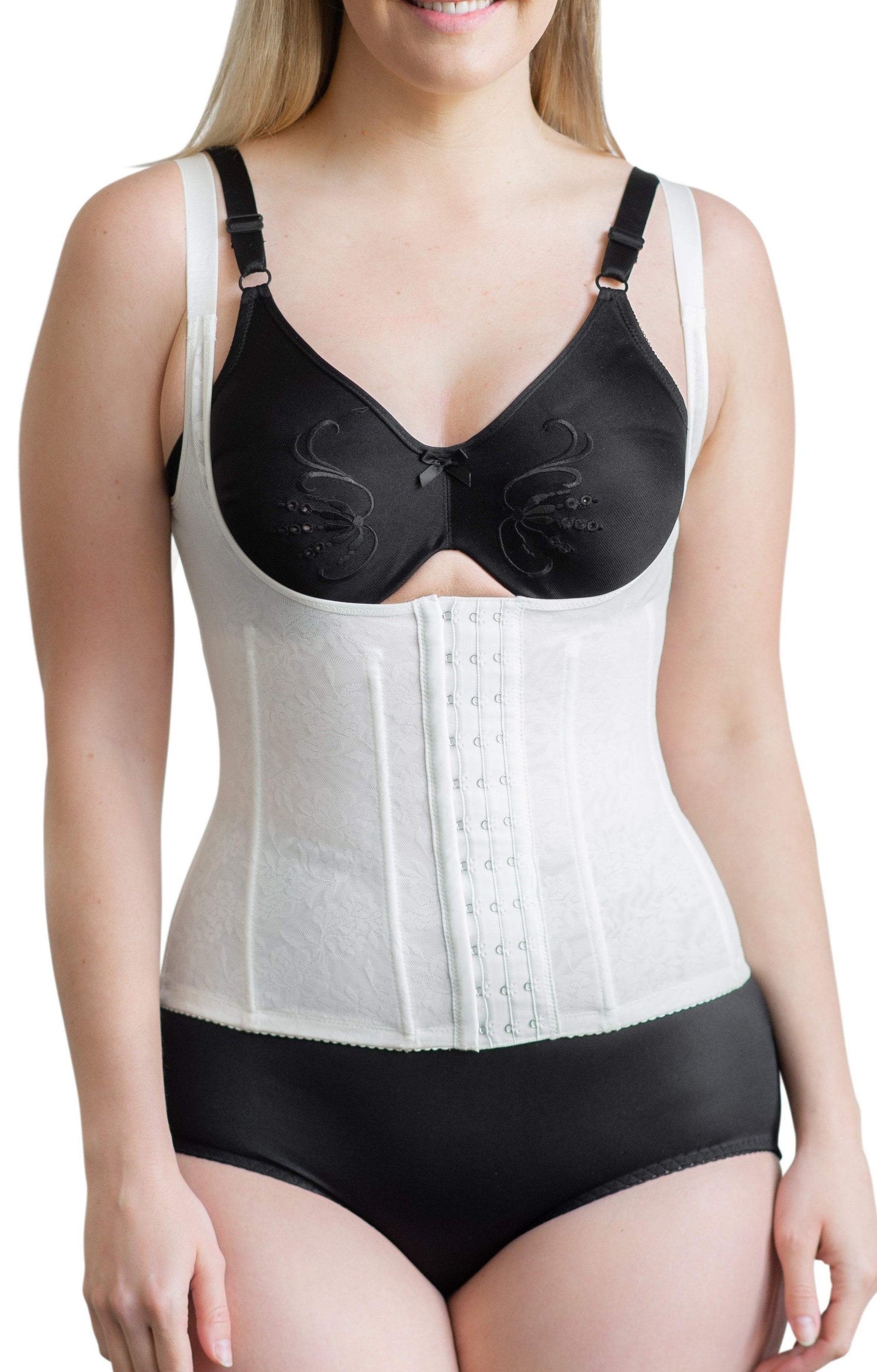 This torsette body shaper offers firm support for your back, tummy and midriff! Larger, easy-to-fasten hook and eyes with three rows of adjustment for a custom fit!