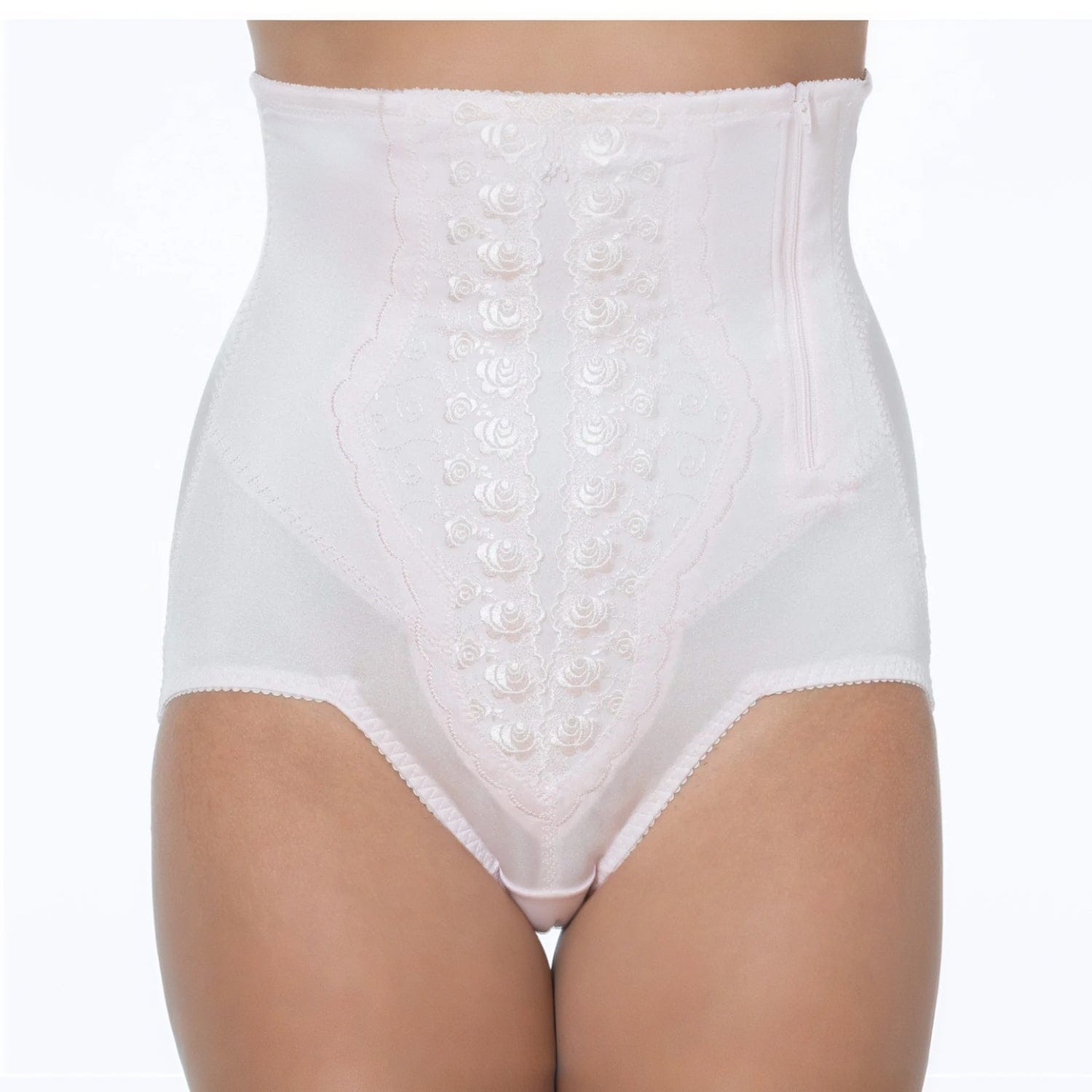 Shaping panty with zipper. Side zipper for easy entry. Firm control panty. Detailing on front for an elegant feel.